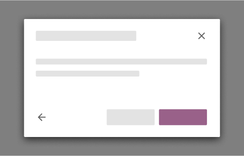 If there is a need for a secondary action, use a flat secondary button that is placed to the left of the action button. Secondary actions should always be dismissive (i.e. does not save any altered data, or cancels a next step).