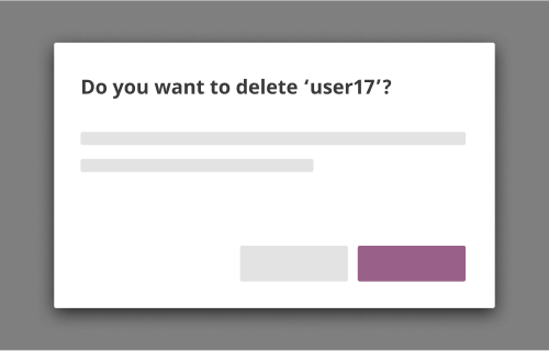 Modals with a primary button can be dismissed in a few ways: through a “cancel/close” button within the modal, or pressing the escape key. For these modals, the enter key should trigger the primary action.