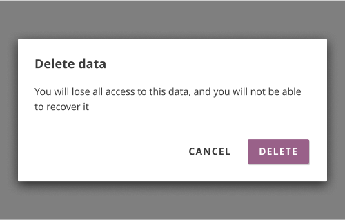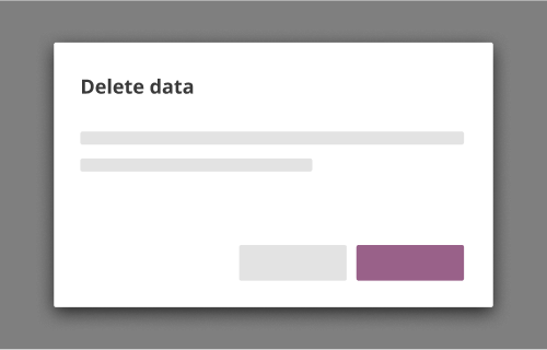 Simple modals break the user’s attention away from the main UI in order to focus attention on a singular action or task. They can contain alerts about important information and allow the user to edit data.